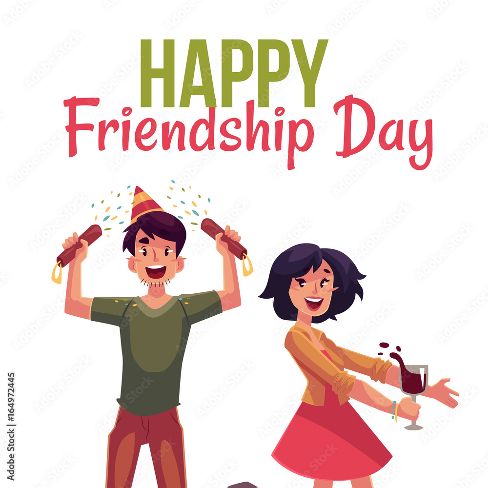 Happy friendship day greeting card design with friends having fun